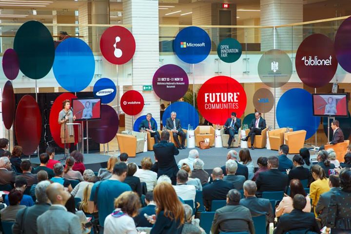 “Future Communities. Open Innovation Fair” a fost primul târg de inovație pentru comunitățile de mâine din România, o platformă de întâlnire pentru autorități, sector privat, start-ups și societate civilă pe subiectul dezvoltării comunităților prin intermediul tehnologiei. În acest context, Conferința ”Future Libraries” plasează biblioteca în centrul comunității viitorului, concentrând în trei zile prezentări de bune practici, abordări pentru servicii și programe durabile și ateliere practice, pe o tematică diversă: servicii noi, modele de lucru în parteneriat, advocacy, impact și învățare pe tot parcursul vieții.