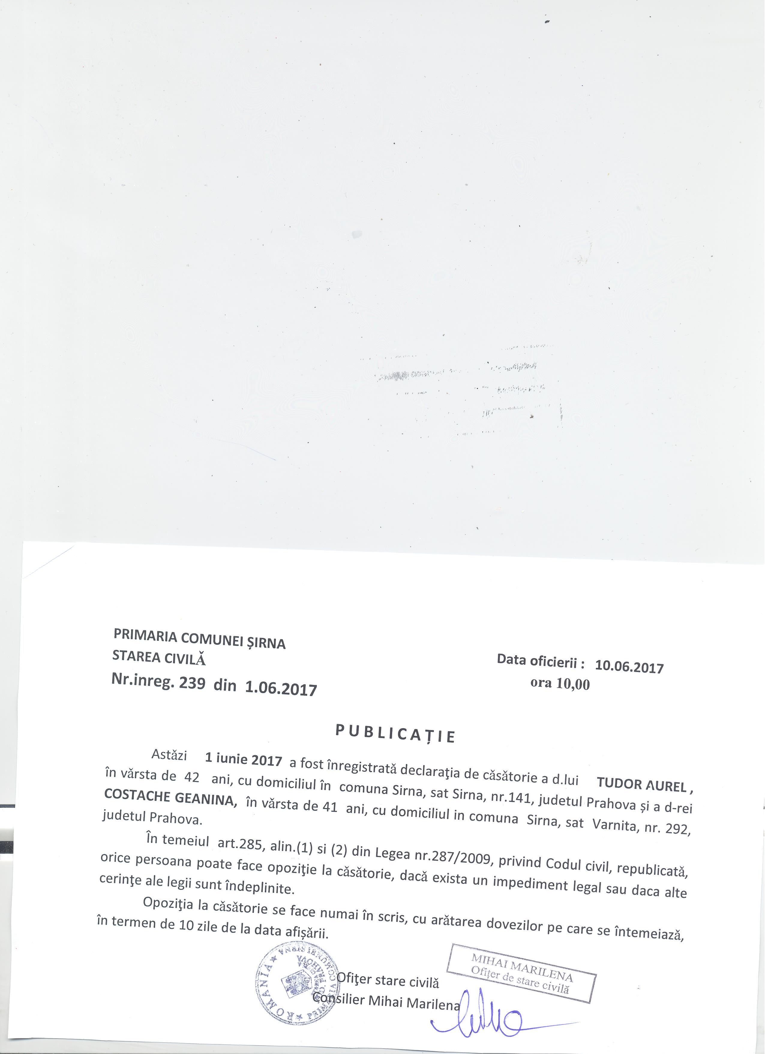 6) Publicatia nr. 239 din data de 01.06.2017 (Tudor Aurel si Costache Geanina)